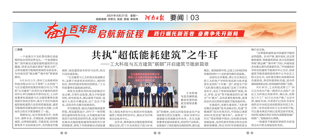 一個(gè)是致力于無機(jī)塑化微孔保溫板研發(fā)應(yīng)用的業(yè)界龍頭,一個(gè)是規(guī)模化推廣國內(nèi)被動(dòng)式超低能耗建筑的行業(yè)翹楚,兩者志同道合喜結(jié)“秦晉之好”,正帶來建筑節(jié)能減排領(lǐng)域的全新變革,為河南實(shí)現(xiàn)“碳達(dá)峰”“碳中和”探索新路徑。