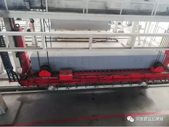 在興安建材常務副總經理司政凱博士帶領下,趙振波一行首先參觀了ALC板生產線,進入巨大車間,仿佛進入機器林立的工業世界:高大的攪拌釜不知疲倦地工作,將攪拌好的漿料倒入長方形模具中;進入植筋工位,機械手抓住鋼絲網片準確放入漿料中,進入養護室;養護成型的大砌塊如頑皮的孩子,在生產線上騰、轉、挪、翻,聽話地進入工位,任由切割鋸的修剪成型,然后排隊進入蒸壓釜;龐大的蒸壓釜橫臥成排,蒸壓養護后的ALC板,進入堆場自然養護。“我們的生產線質量過硬,智能化程度高,生產穩定,產品質量高”,司政凱介紹說。