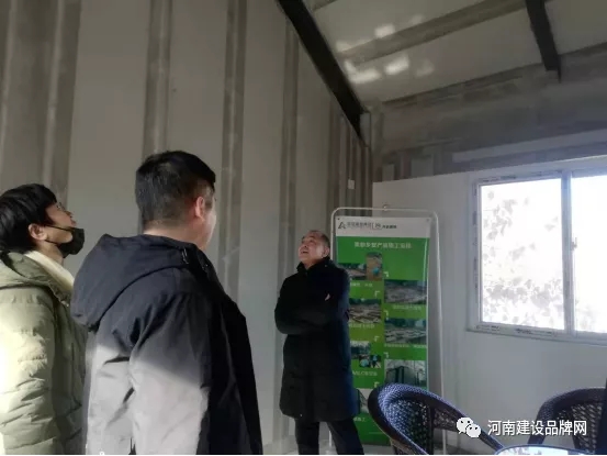 在ALC板安裝示范墻前,趙振波總經理認真詢問了施工過程,板與板之間縫隙處置辦法,固定方式以及墻板內應力釋放措施等,司總做了認真的解釋。